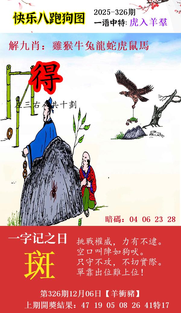 | 326期五肖 | 龙马猪羊狗 | 开:?00中 |